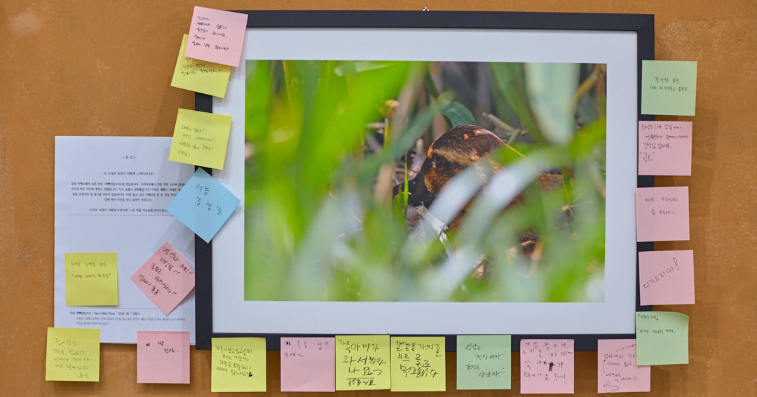 두 번째 이유는 스승님의 사진 전시를 보고 나서다. 스승님은 15년도 넘게 꽤 오래 탐조를 해오신 분이다. 아직 나는 나무만큼이나 새를 이해할 수 없다. 하지만 사진과 병치한 제목과 설명글을 들여다보고 새끼손가락 때만큼은 안 것 같았다. 나무와 새는 인간과 다른 생명이지만 본질은 같다는 점이다. 오랫동안 관찰하고 탐구하면 깨닫는 게 아닐까. 우주를 인간의 삶으로 엮은 「코스모스」가 떠오른다.