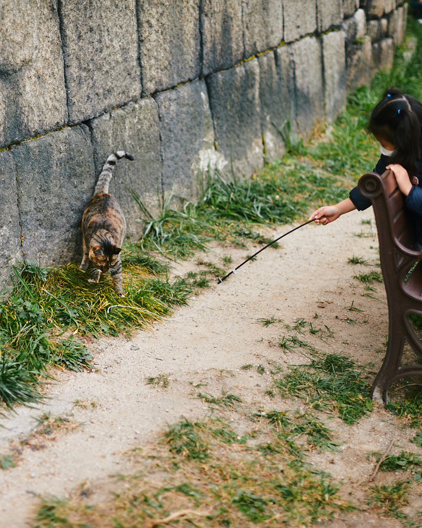 성곽길을 따라 한성대 방향으로 내려오는 길에 개냥이들이 많았다. 한 부녀가 개냥이 한 마리씩 데리고 놀고 있었다. 꼬마는 아예 장난감을 가지고 놀아주고 있고 아빠는 앉아서 꽁냥꽁냥 하고 계셨다. 뭐 이런 동네가 다 있을꼬.