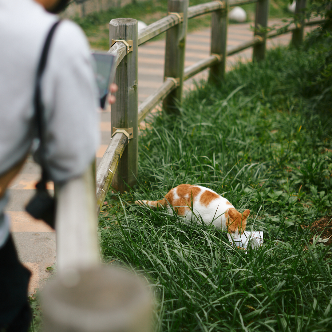 관심을 주든지 말든지 자기 할 일에 집중하는 길냥이가 있는 반면 놀아달라고 졸라대는 개냥이가 있다. 처음 마주친 길냥이는 오리지날 찐냥이. 둘이 노는 것 같지는 않다. 서로 성별이 다르고 입장이 달라 보인다. 나이도 조금 있는지 의젓한대 가까이 다가가도 별 반응이 없다. 쫄보는 아닌 듯.