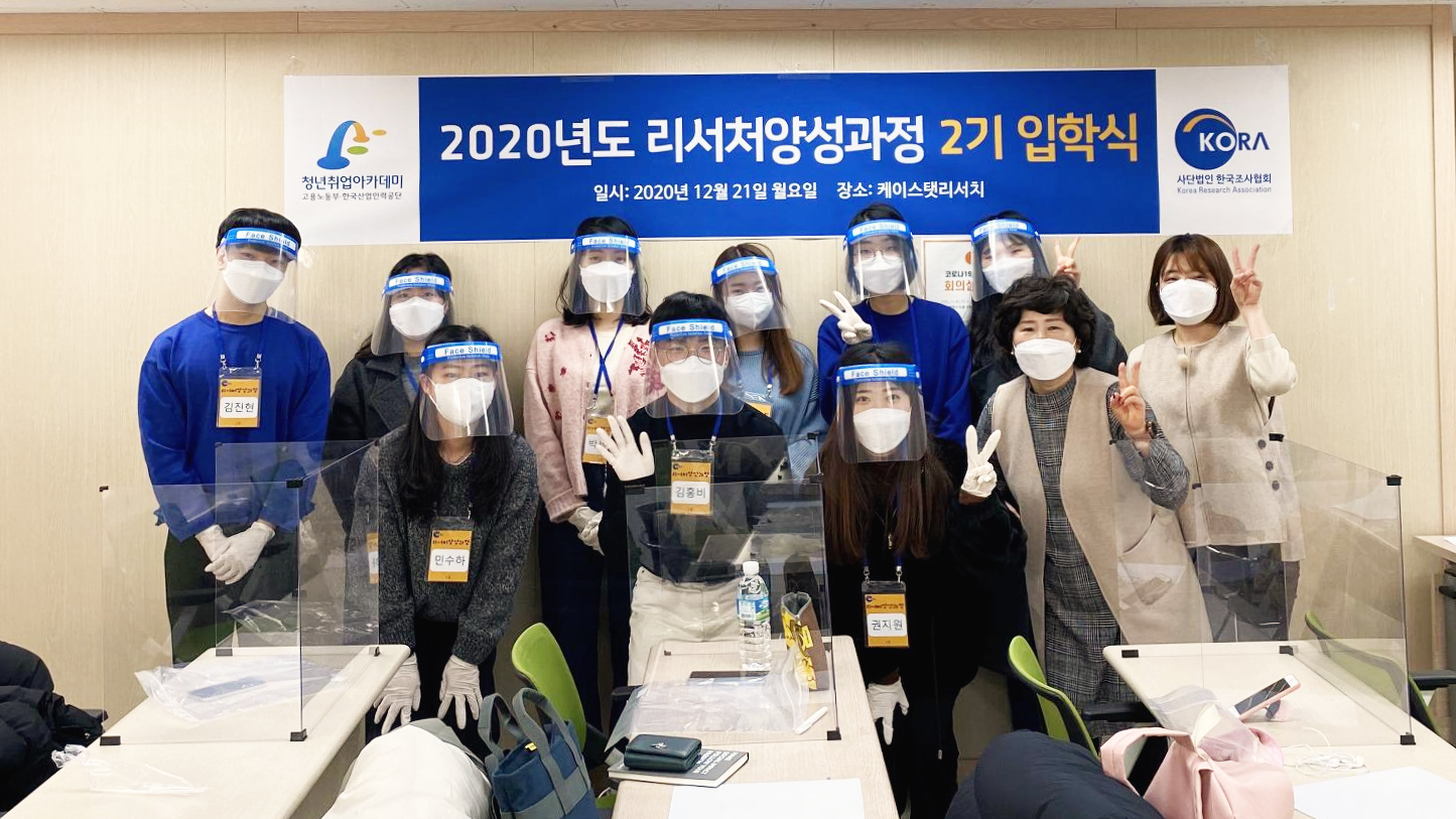 리서처양성과정 2020년 2기(14기) 선발면접에서 합격했다. 입학식 장소도 면접 못지않게 긴장을 안고 참석했다. 초면의 사람들 얼음같은 분위기, 열댓명의 사람들이 마스크로 얼굴을 꽁꽁 싸매고 있으니 다시 면접장의 창백함이 떠오를 뿐이다. 한국조사협회(KORA) 사무국장님만이 겨울보다 더 겨울같은 이 분위기를 녹일 수 있었다.